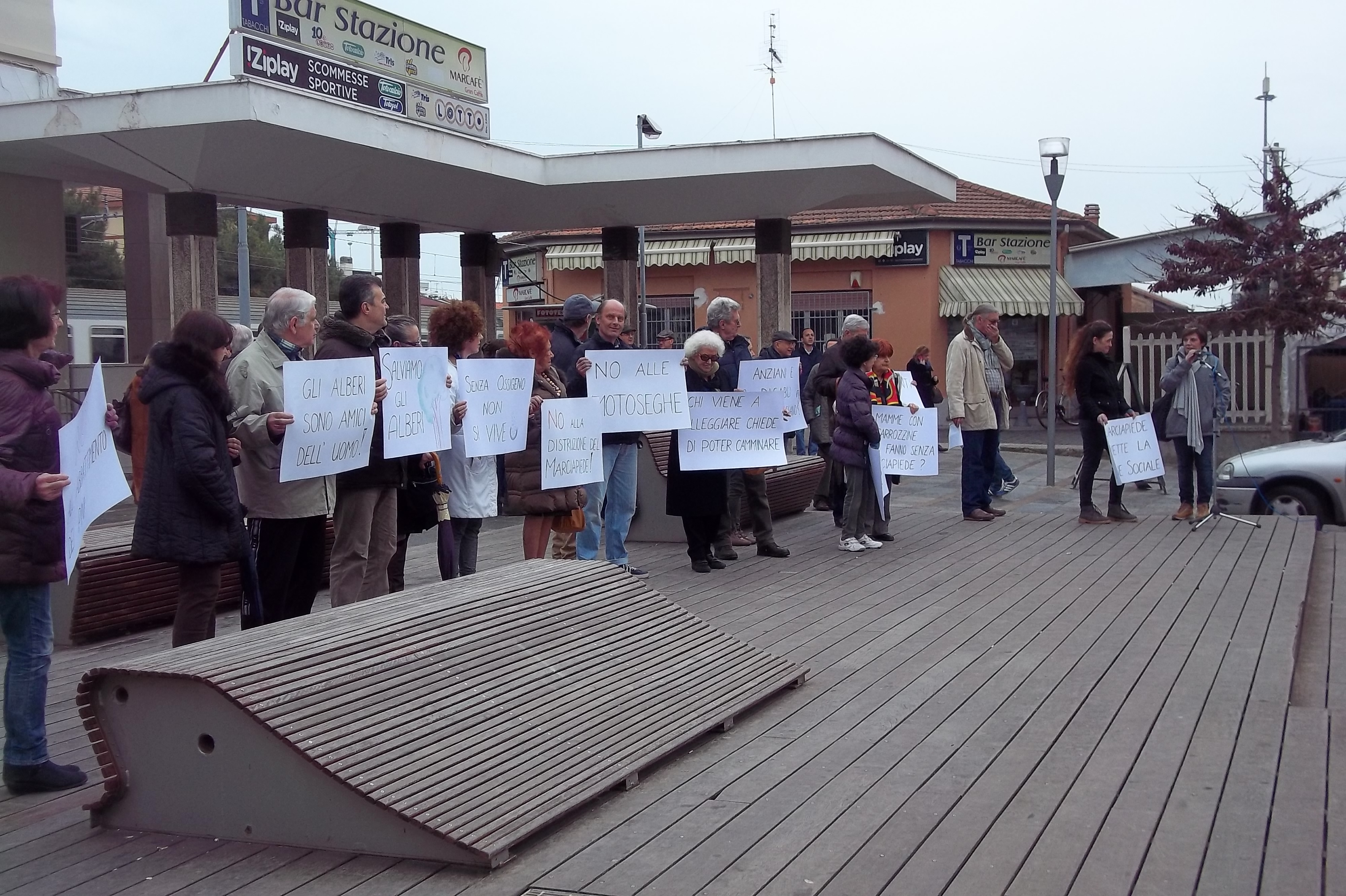 Invece, qui da noi, c’è stato solo l’assordante silenzio del sindaco Pavone, che ha trovato nelle Fs un prezioso alleato. E sono state le Ferrovie dello Stato a indicare, con una svastica, gli alberi da abbattere in via Colombo, per realizzare uno squallido ed assolato parcheggio, in sostituzione del marciapiede e del bellissimo viale adornato da maestosi pini.